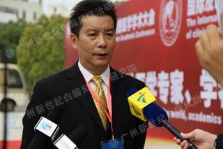 图:广州新世纪白癜风防治研究院梁京峰教授荣获“皮肤健康卫生”荣誉称号后接受广州卫视、人民网等权威媒体专访